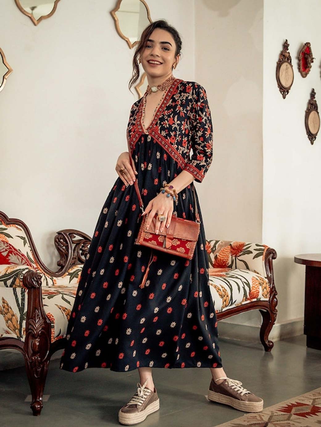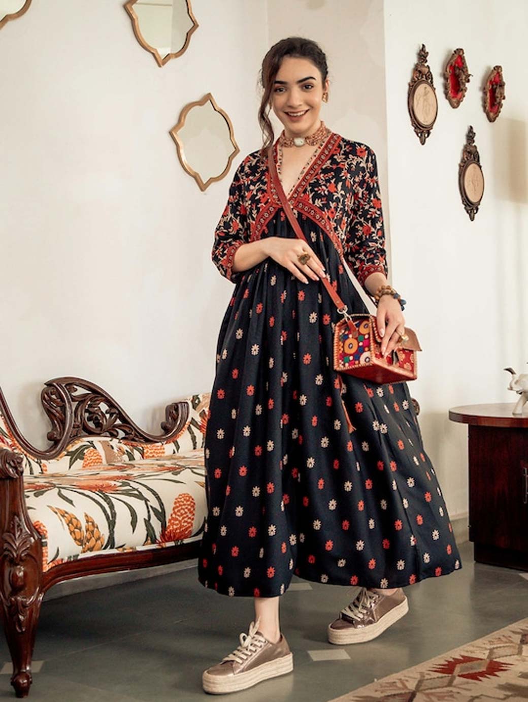 Black & Orange Ethnic Motifs Printed Maxi Dress