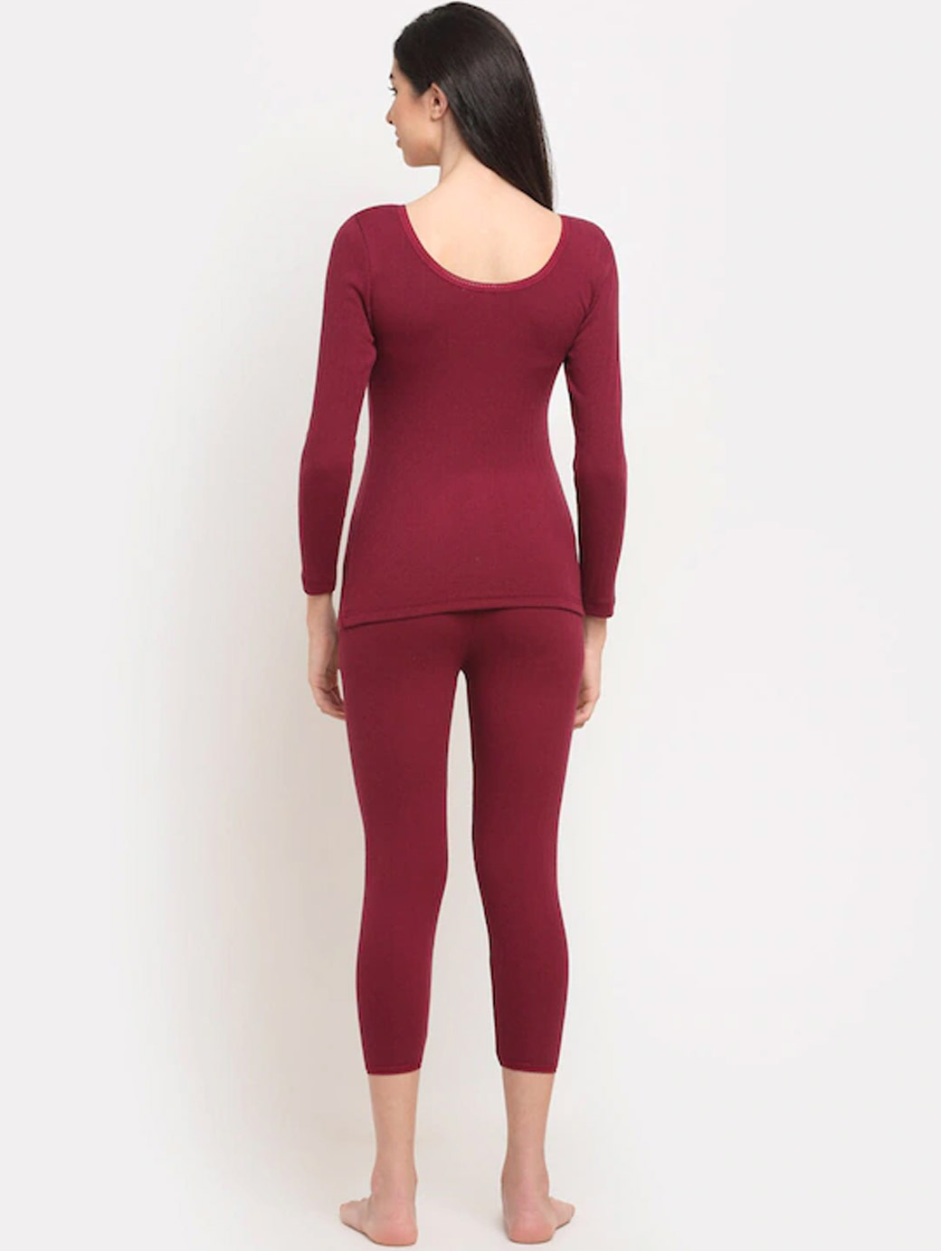 Women Maroon Self-Design Thermal Set