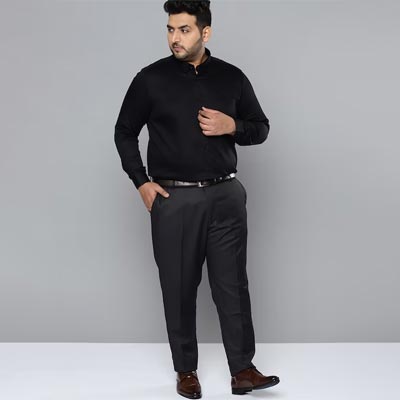 Black solid opaque Formal shirt ,has a button-down collar, button placket, 1 patch pocket, long regular sleeves, curved hem