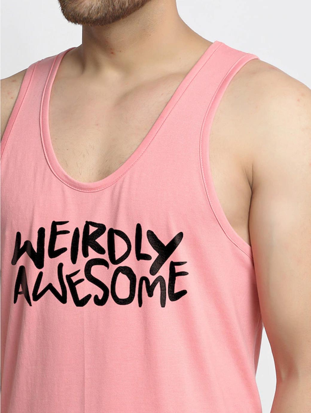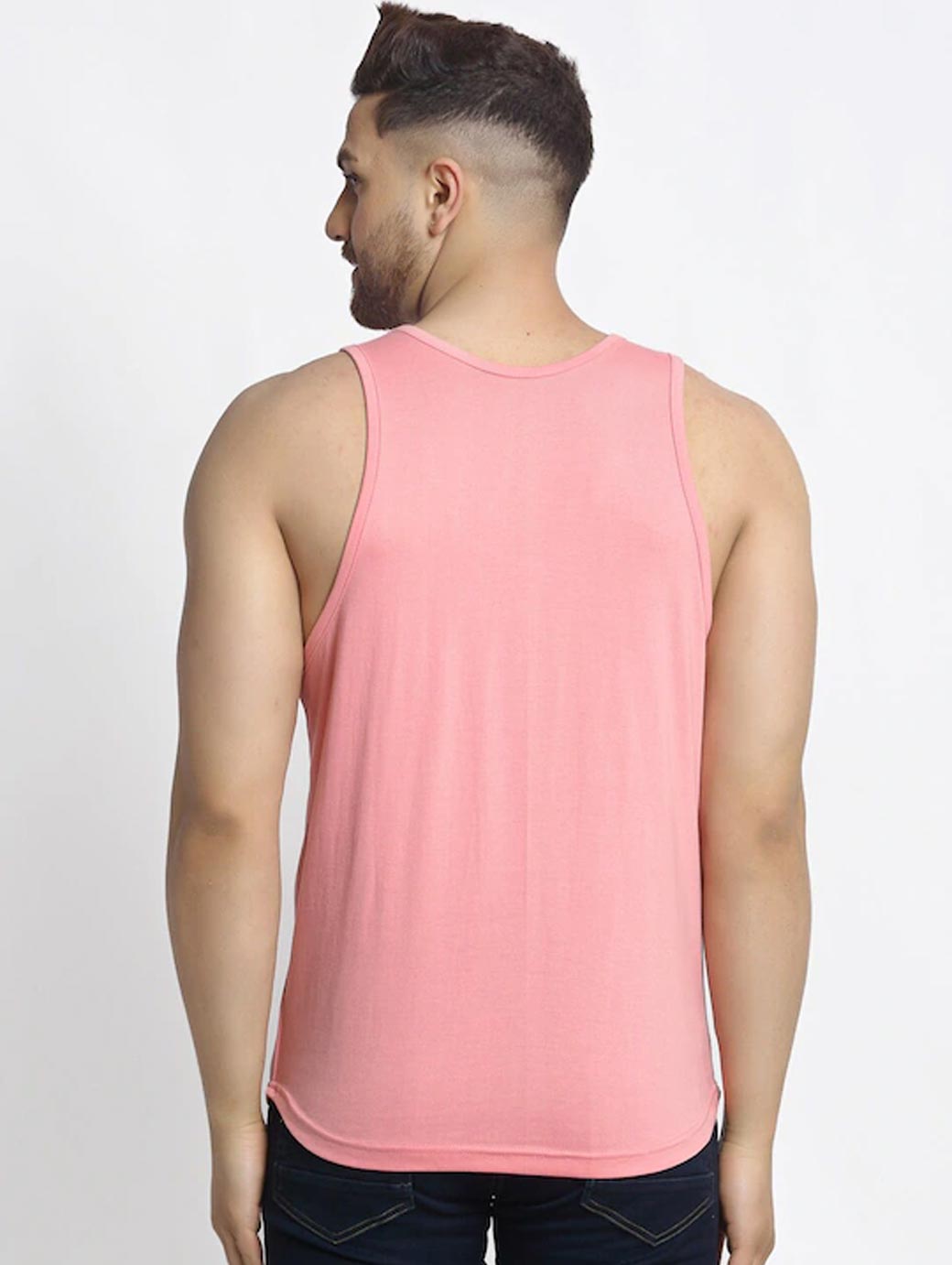 Men Coral-Pink Printed Pure Cotton Innerwear Gym Vest