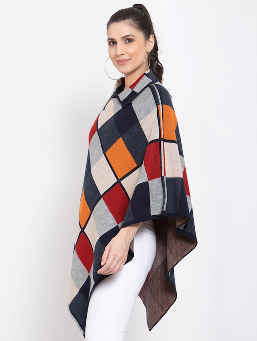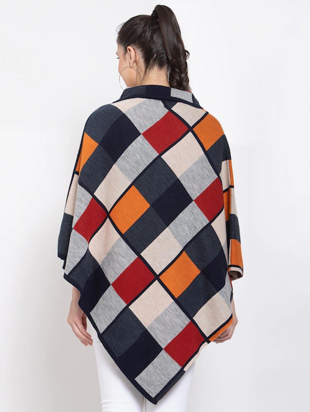 Beige and grey checked lapel regular shrug ,has long sleeves, straight hem