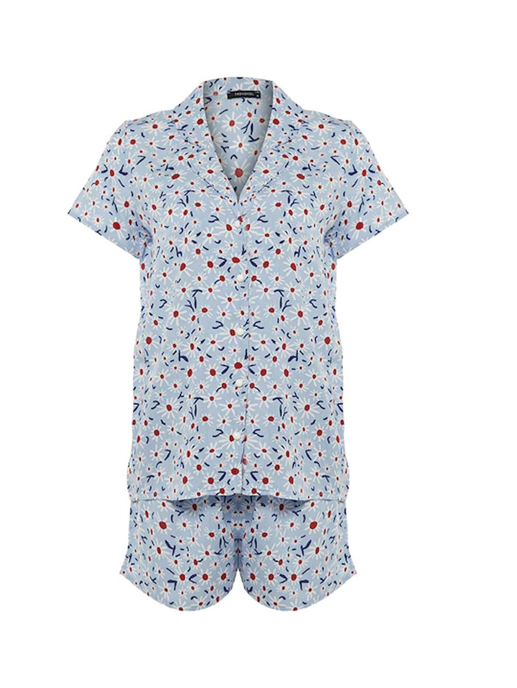 Women Blue & Red Printed Night suit