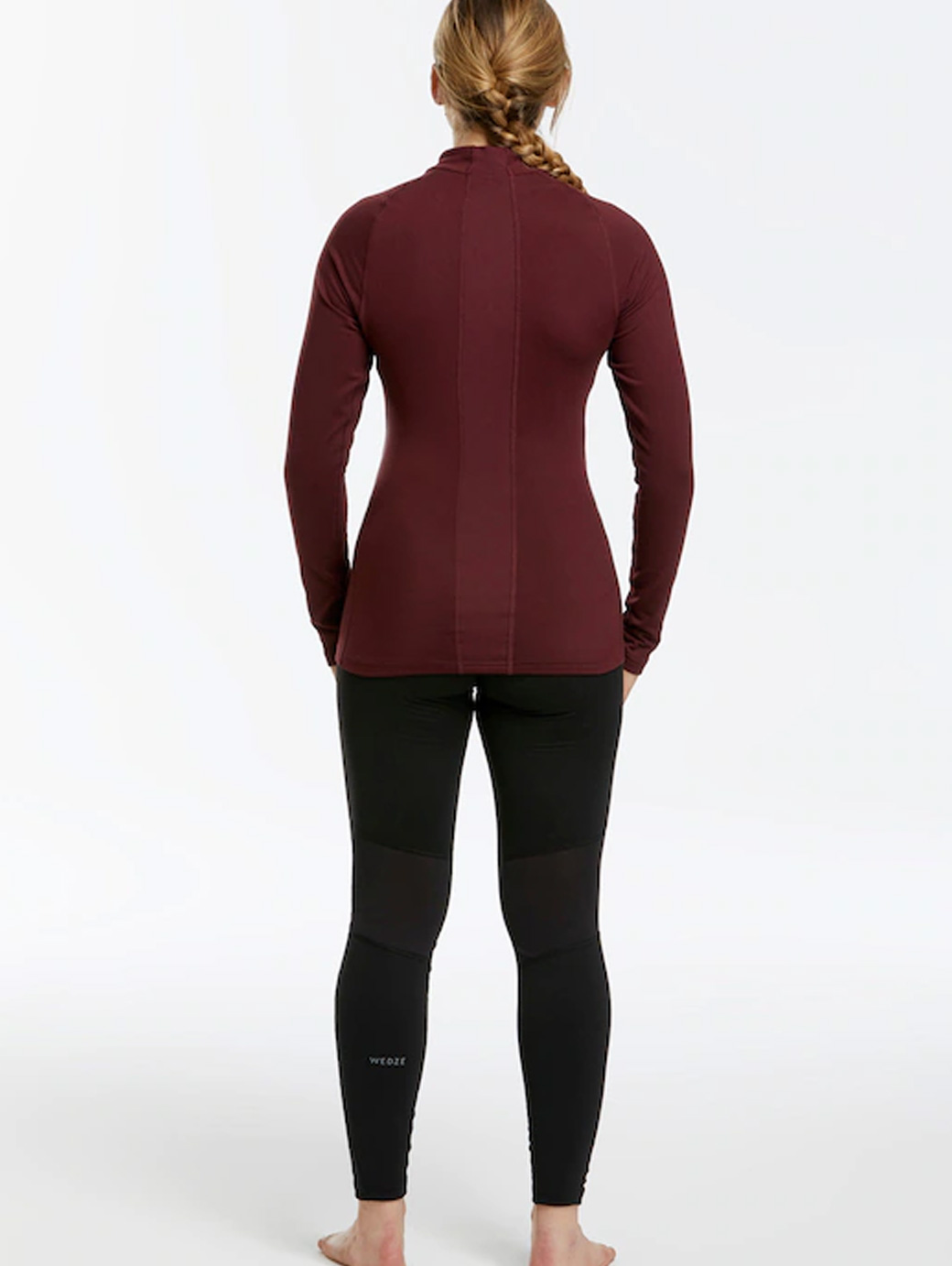 Burgundy solid thermal t-shirt, has roundneck, long sleeves