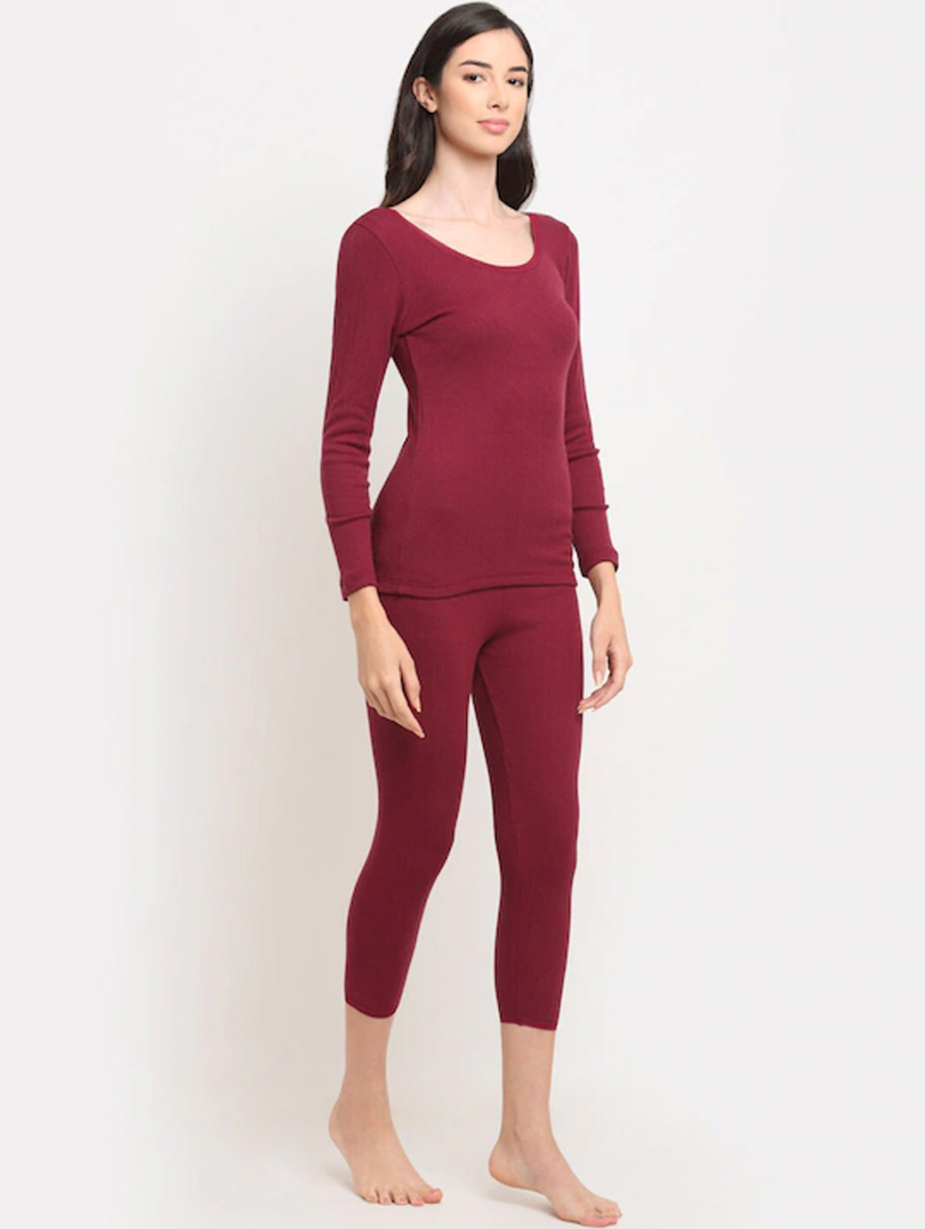 Women Maroon Self-Design Thermal Set