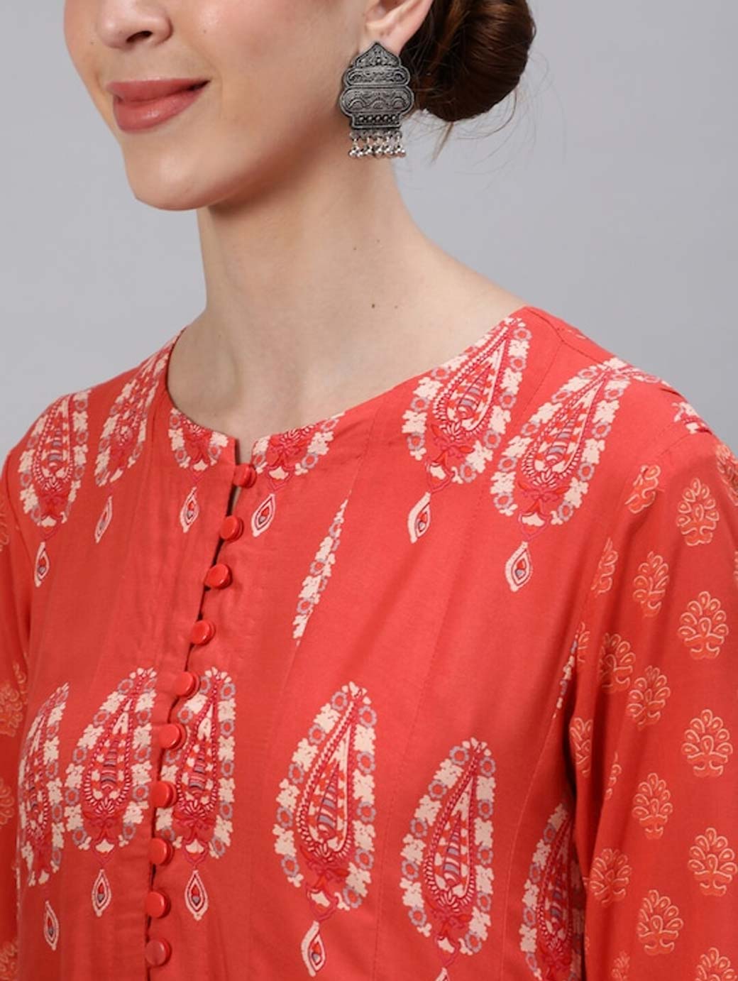 Women Geometric Printed Keyhole Neck Anarkali Kurta